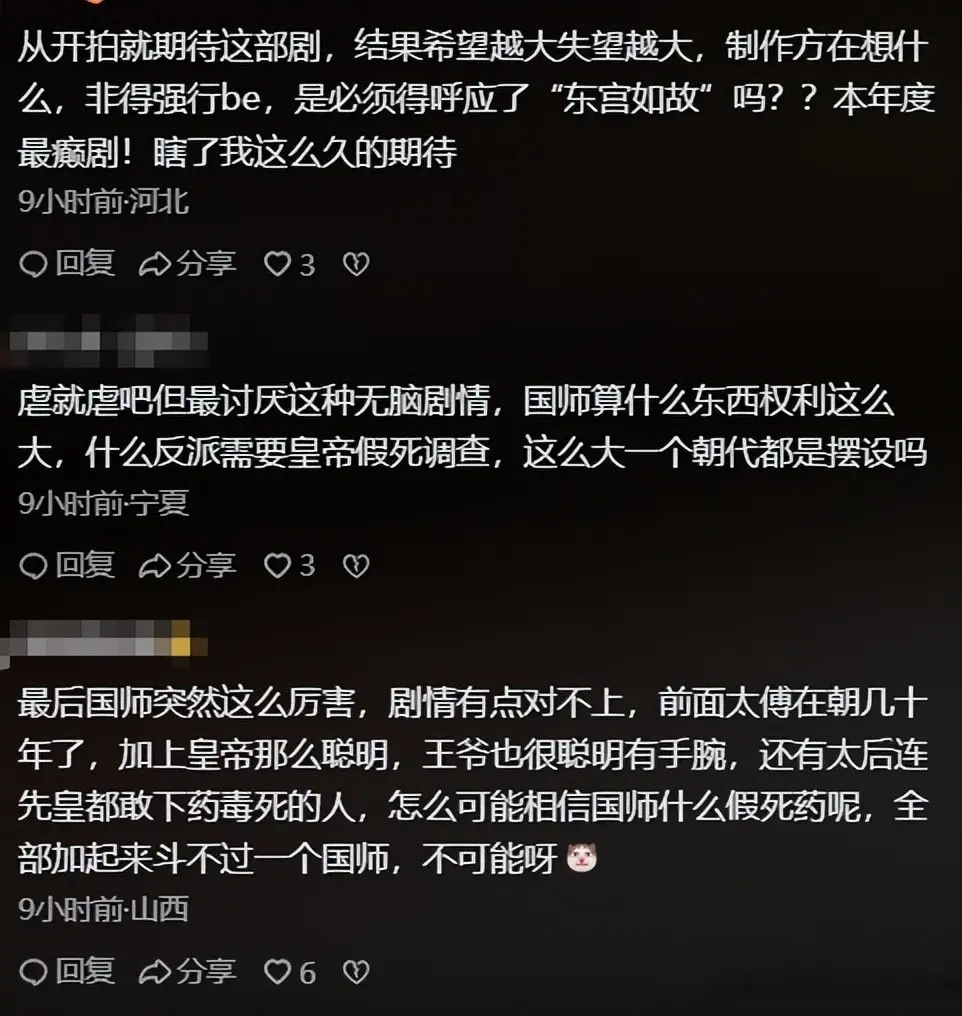 这剧情也是被网友辣评:“ 编剧脑子用错了开塞露,写得乱七八糟;导演脑子搭错了筋,拍得删删减减。”