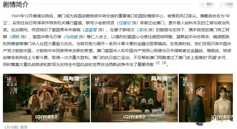 讲的是华商在澳门的抗日救国活动,属于是新视角新商战了。
